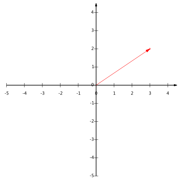 下面我们继续在二维空间内讨论向量。上文说过,一个二维向量可以对应二维笛卡尔直角坐标系中从原点出发的一个有向线段。例如下面这个向量: