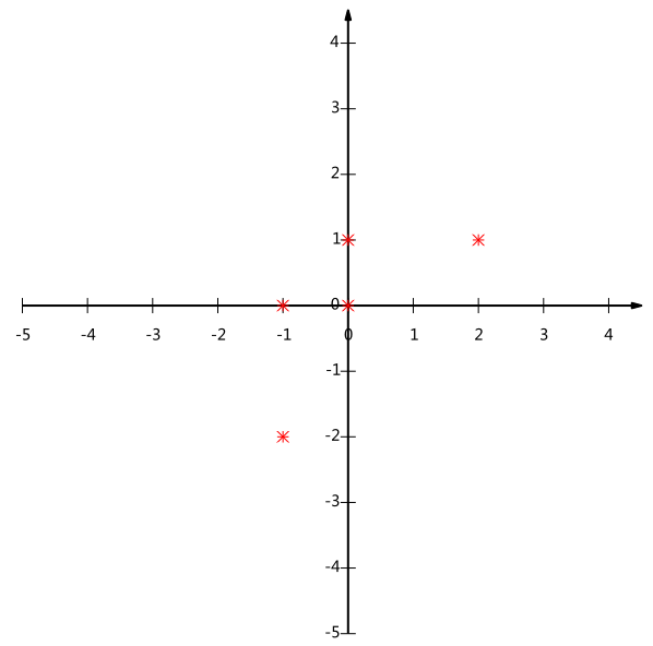 我们可以看下五条数据在平面直角坐标系内的样子: