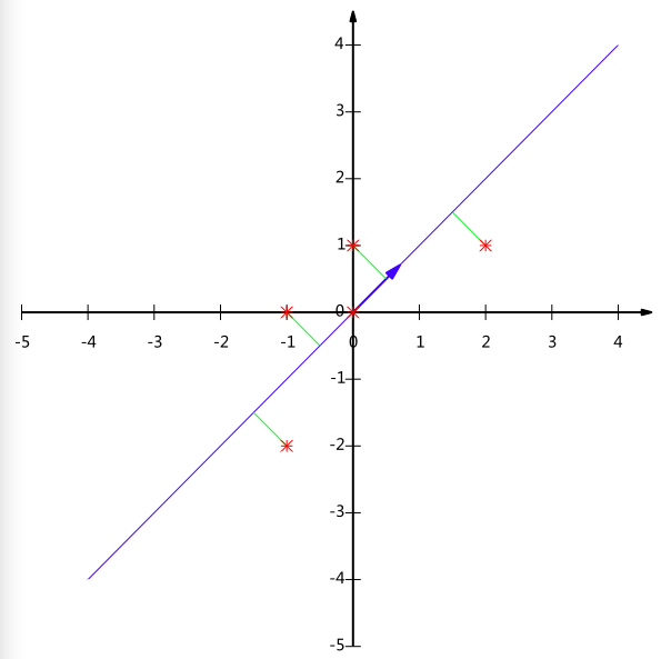 通过上一节对基变换的讨论我们知道,这个问题实际上是要在二维平面中选择一个方向,将所有数据都投影到这个方向所在直线上,用投影值表示原始记录。这是一个实际的二维